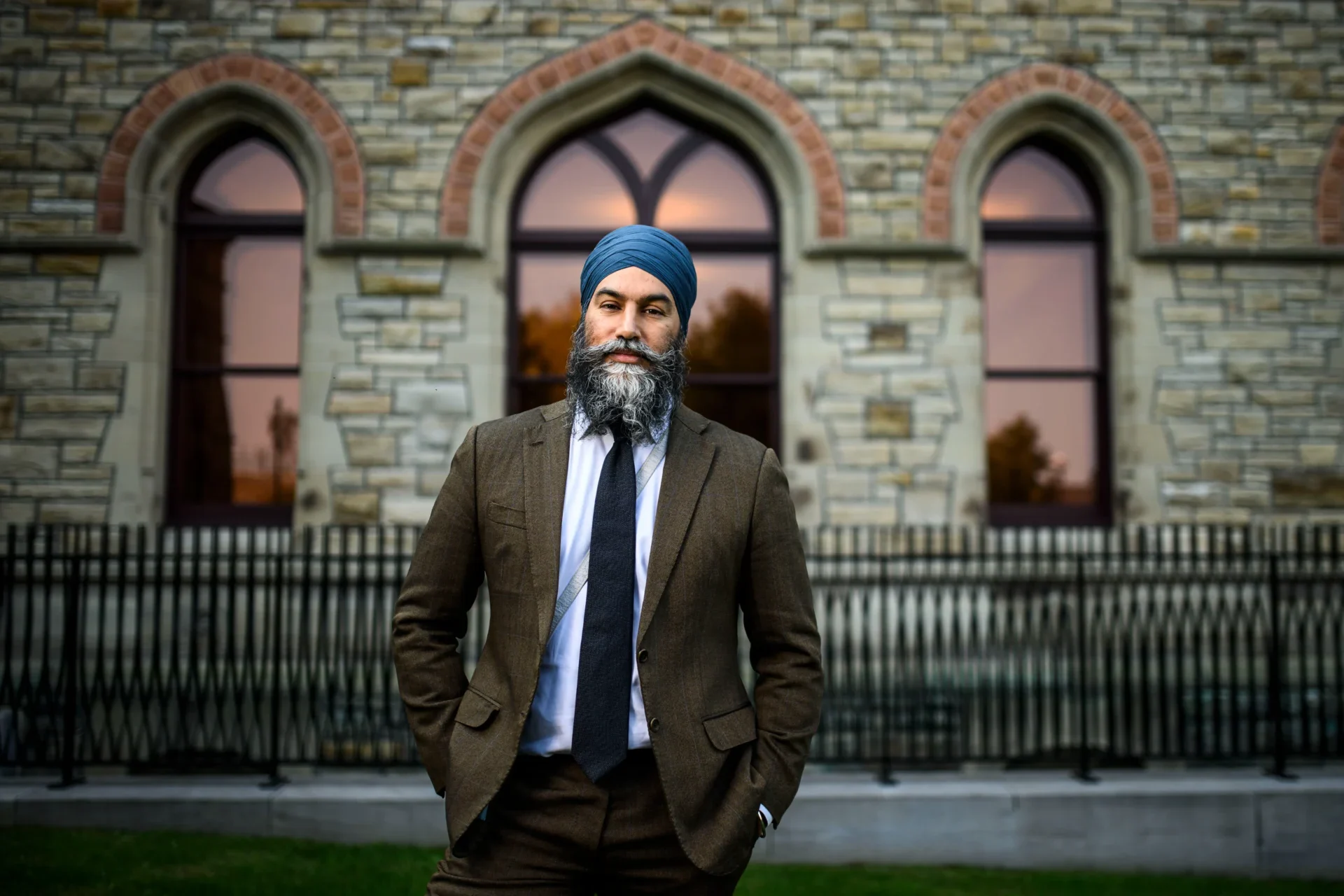 Jagmeet Singh gehört der Glaubensrichtung der Sikh an. Er praktiziert seine Religion offen und trägt den traditionellen Turban und den Kirpan.